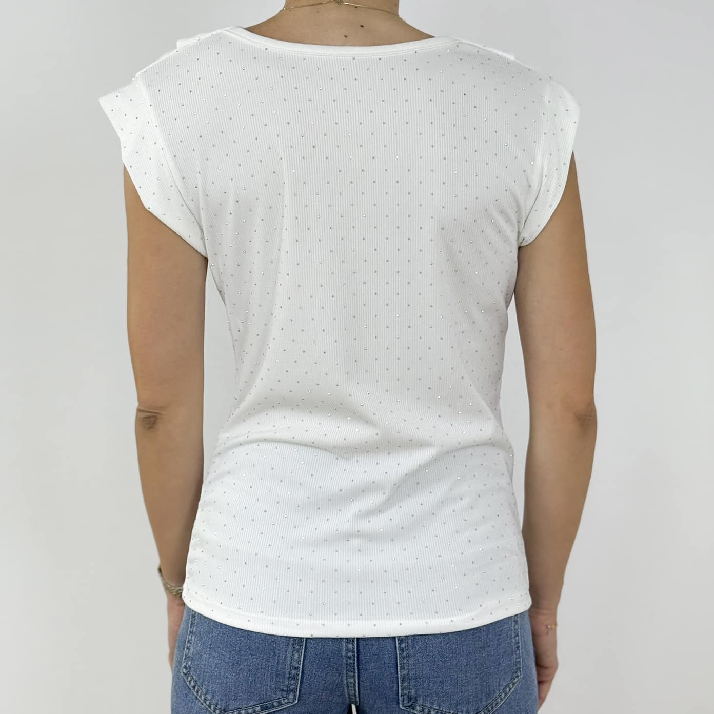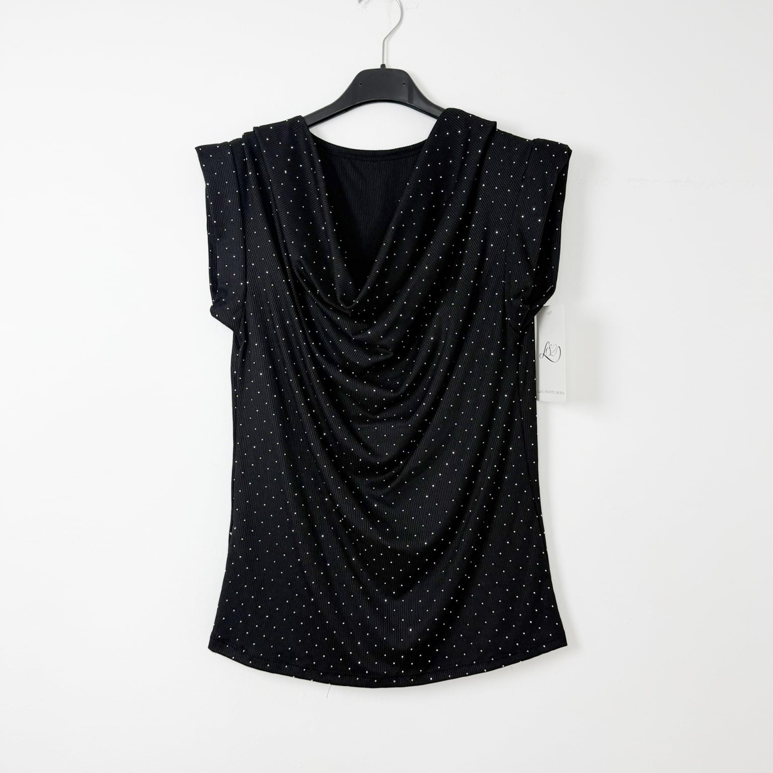 Add an elegant sparkle to your summer looks with this draped-front sleeveless top, available in timeless white and black. Designed with subtle shimmer details and a soft ribbed texture, it’s a flattering and versatile piece for both day and night wear.