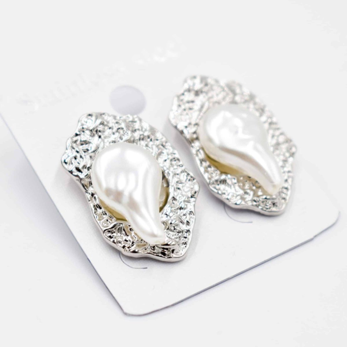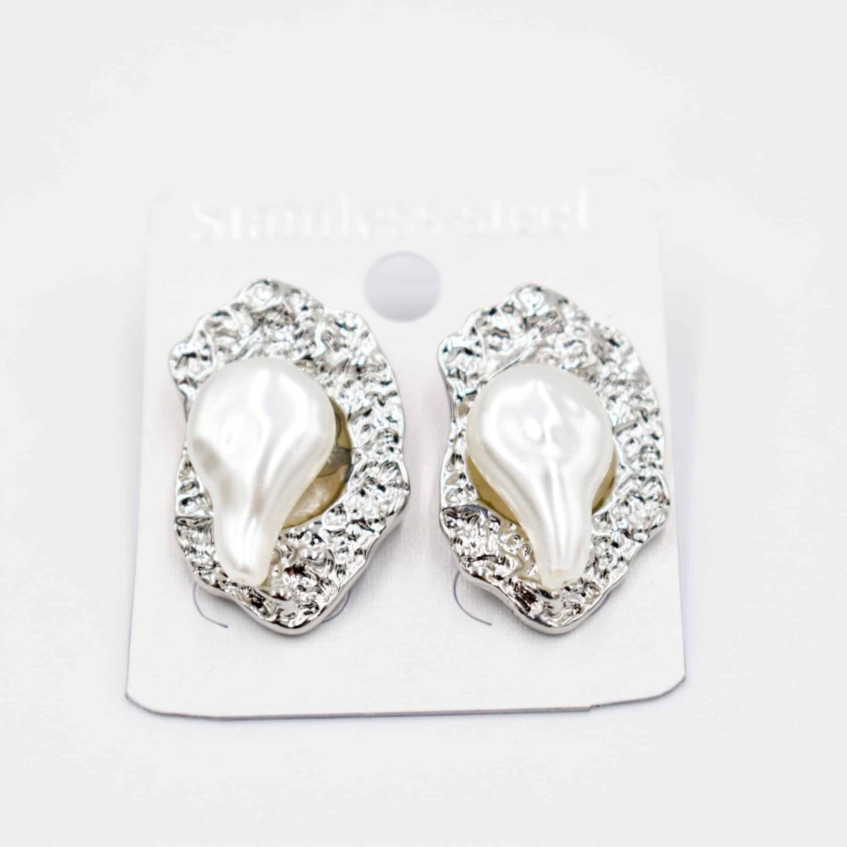 Make a bold and elegant statement with these Silver Sculpted Pearl Drop Stud Earrings. Featuring a uniquely shaped faux pearl set atop a textured silver-tone base, this artistic design brings a luxurious and modern twist to classic pearl jewelry. Lightweight, hypoallergenic, and eye-catching, they are perfect for elevating both everyday outfits and special-occasion looks.