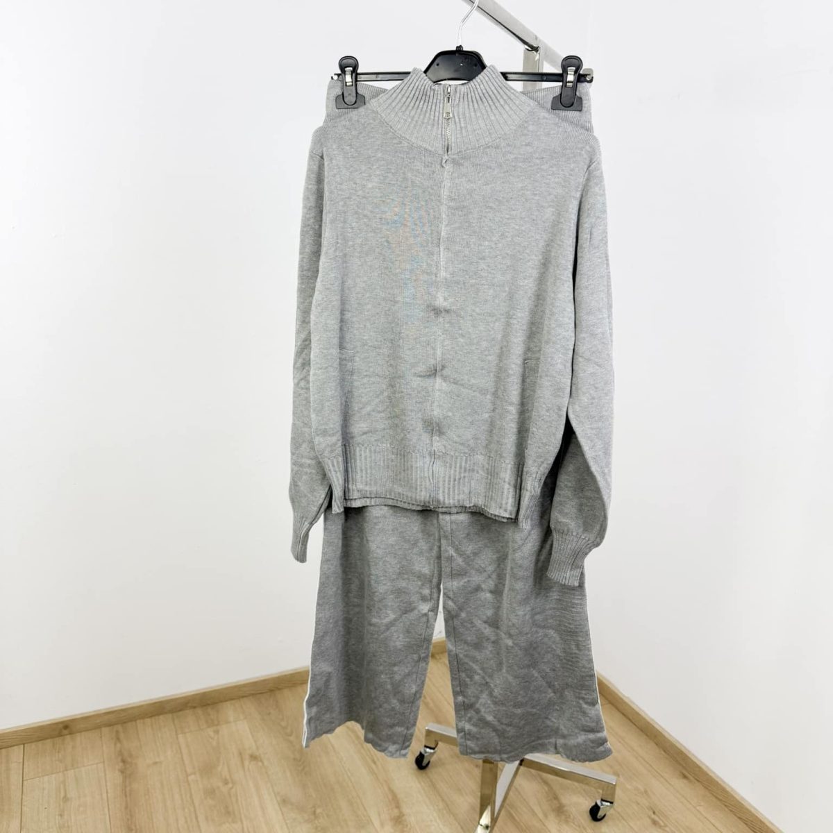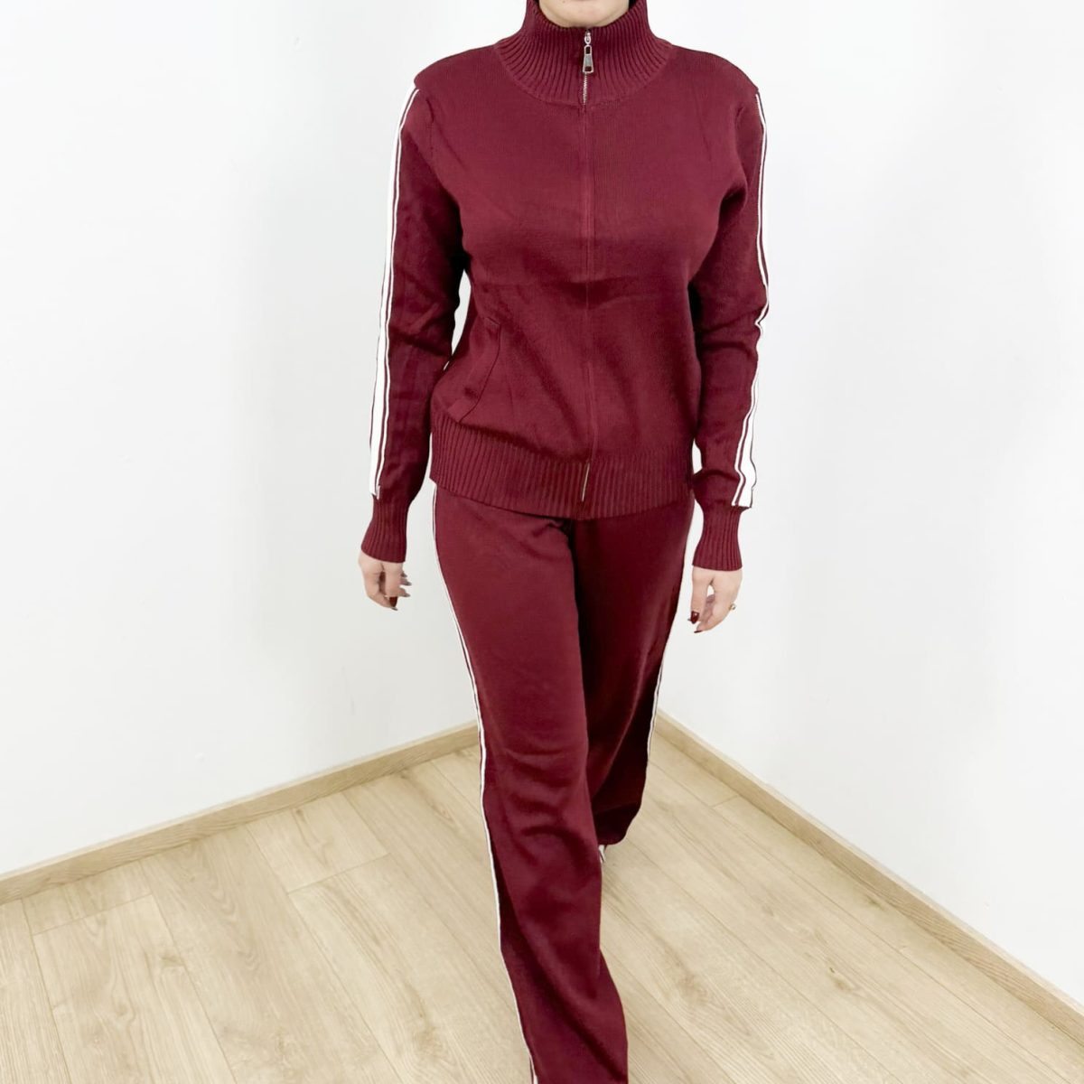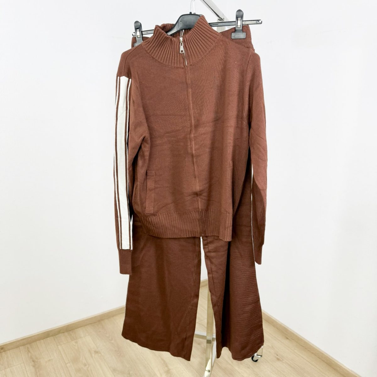 Stay effortlessly stylish and comfortable with the Sporty Knit Zip-Up Tracksuit Set, designed with a high-neck zip jacket and relaxed wide-leg pants for a sleek athleisure silhouette. The contrasting side stripes add a dynamic sporty touch, while the soft knit fabric ensures all-day comfort. Perfect for casual outings, travel days, or elevated loungewear looks.