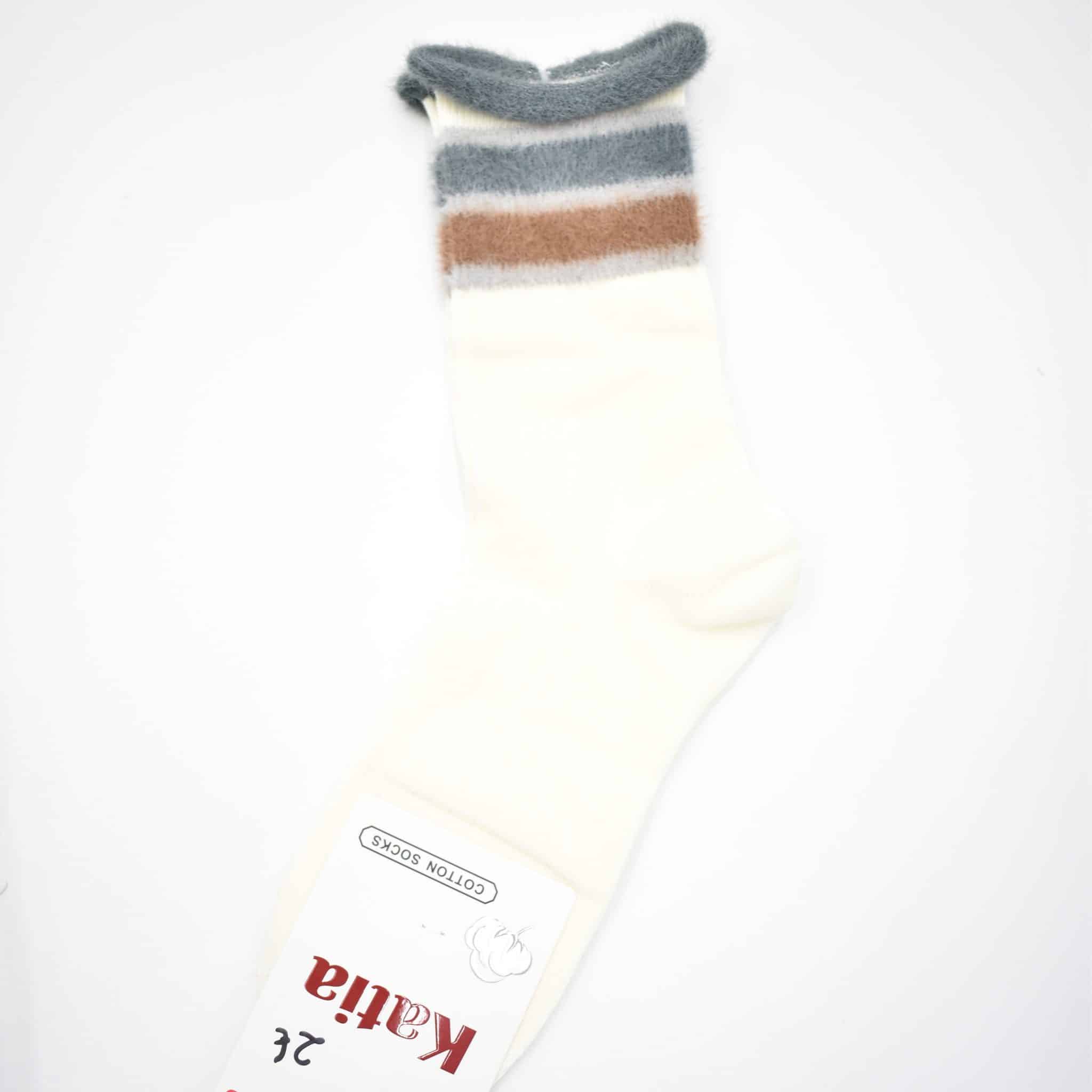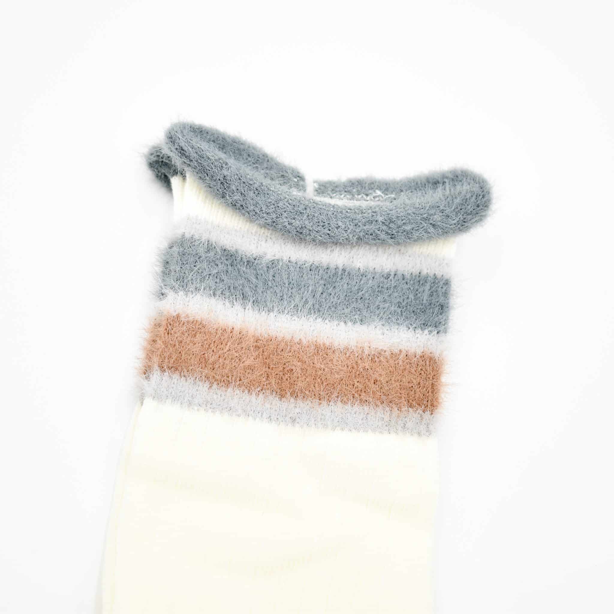Featuring elegant color combinations like ivory, beige, pink, and charcoal with contrasting soft stripes, these fuzzy socks are ideal for lounging at home or adding a playful twist to your everyday outfits. Their stretchy, breathable knit ensures a snug yet comfortable fit, perfect for all-day wear.