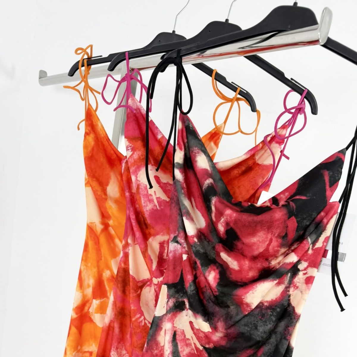 Step into summer with the ultimate statement piece — this floral satin midi dress with an open back and tie straps. Designed for the confident woman who embraces vibrant prints and effortless elegance, it’s perfect for beach dinners, summer parties, or sunny getaways.