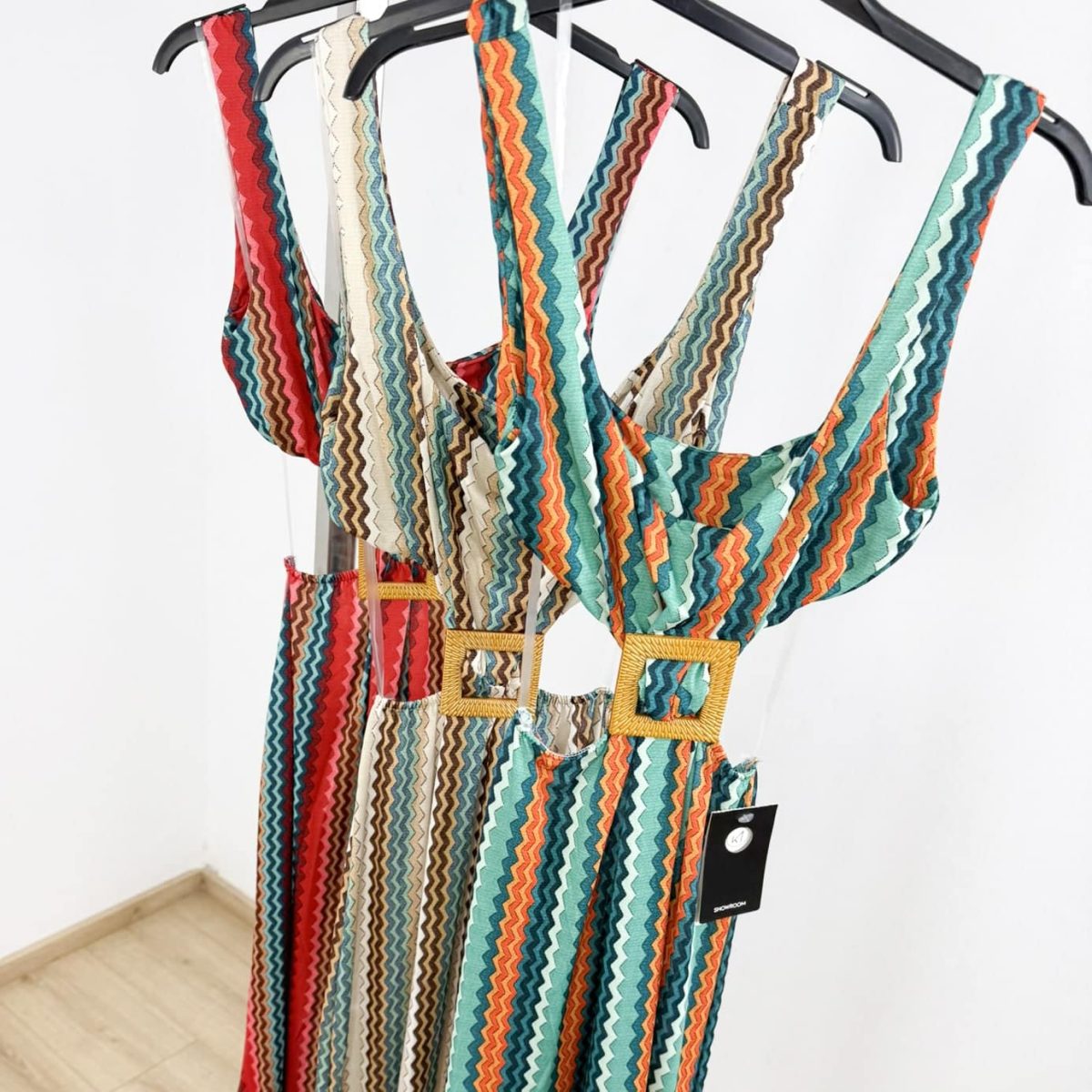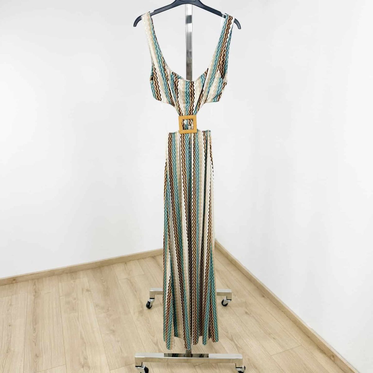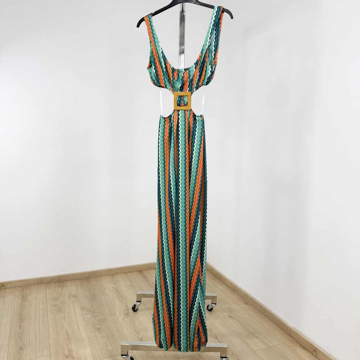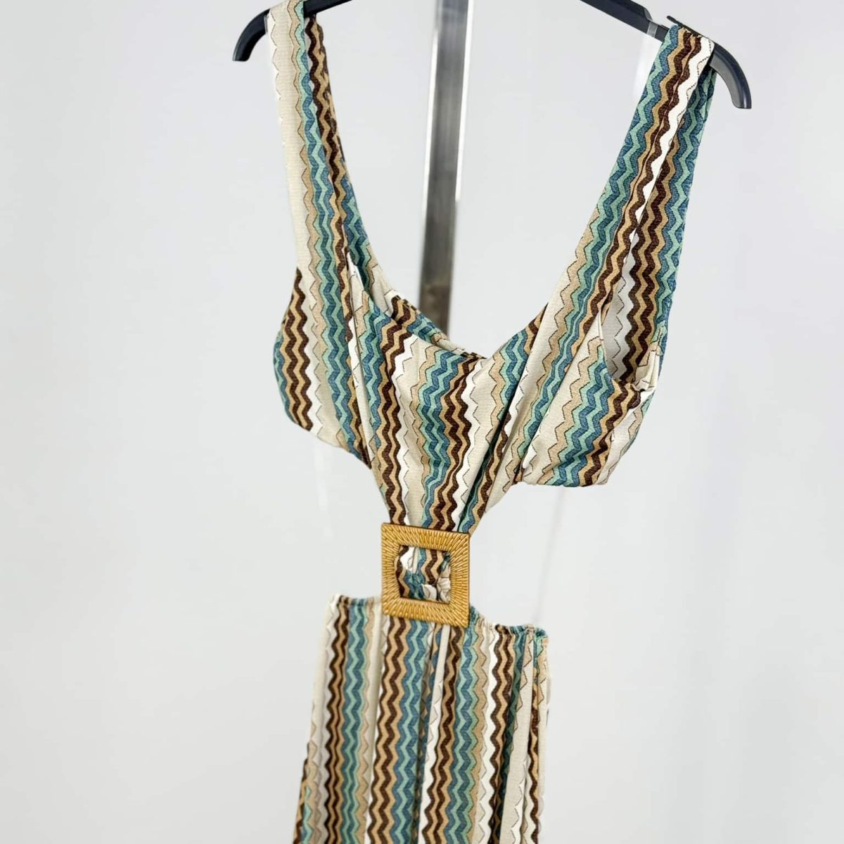 Make a statement this summer with our Sunwave Cutout Maxi Dress – the ultimate blend of bold color and confident design. Featuring a figure-flattering silhouette with a central cutout, this sleeveless dress is detailed with a playful zigzag print and a standout belt buckle at the waist for an extra pop of retro flair. Available in multiple vibrant colorways.