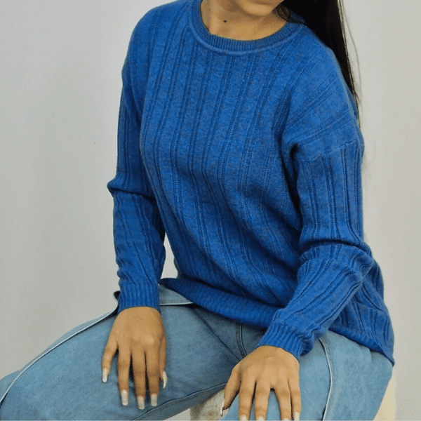 This textured crew neck knit sweater combines comfort with classic style. Featuring a subtle ribbed pattern that adds depth and dimension, it offers a relaxed fit that is perfect for layering during cooler weather. The long sleeves and crew neckline create a timeless silhouette, while the soft knit material ensures warmth and coziness. Available in versatile shades, this sweater pairs effortlessly with jeans or casual pants, making it an ideal choice for both everyday wear and relaxed outings.