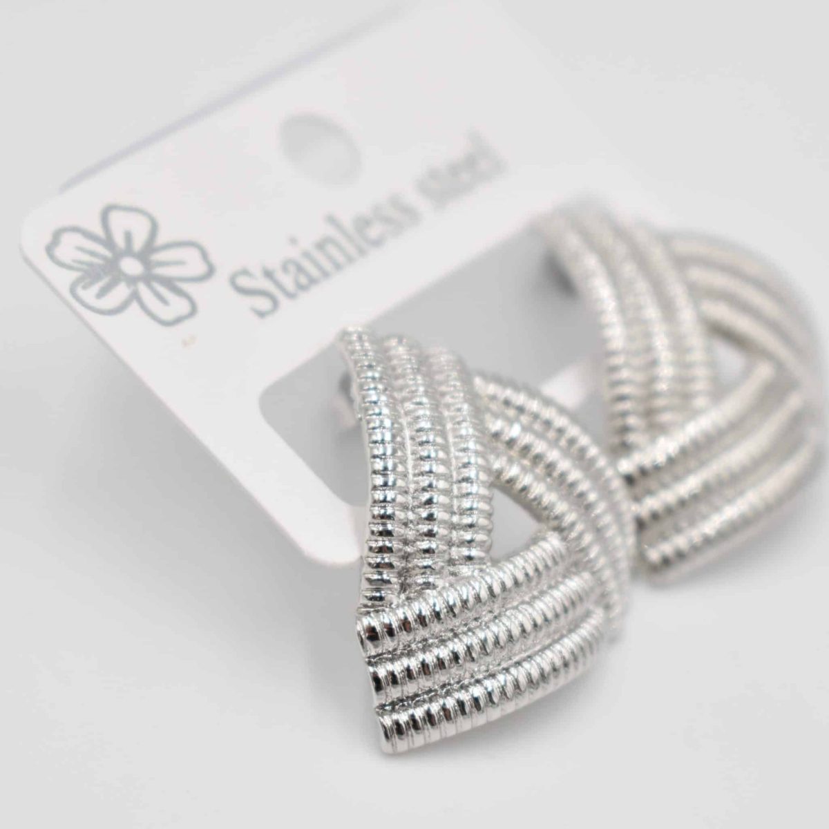 These uniquely twisted silver-tone studs add instant elegance to any outfit. Perfect for adding texture and shine without overpowering your look.
