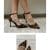 Pointed heels with a perforated texture and ankle strap, available in black, gold, and grey.