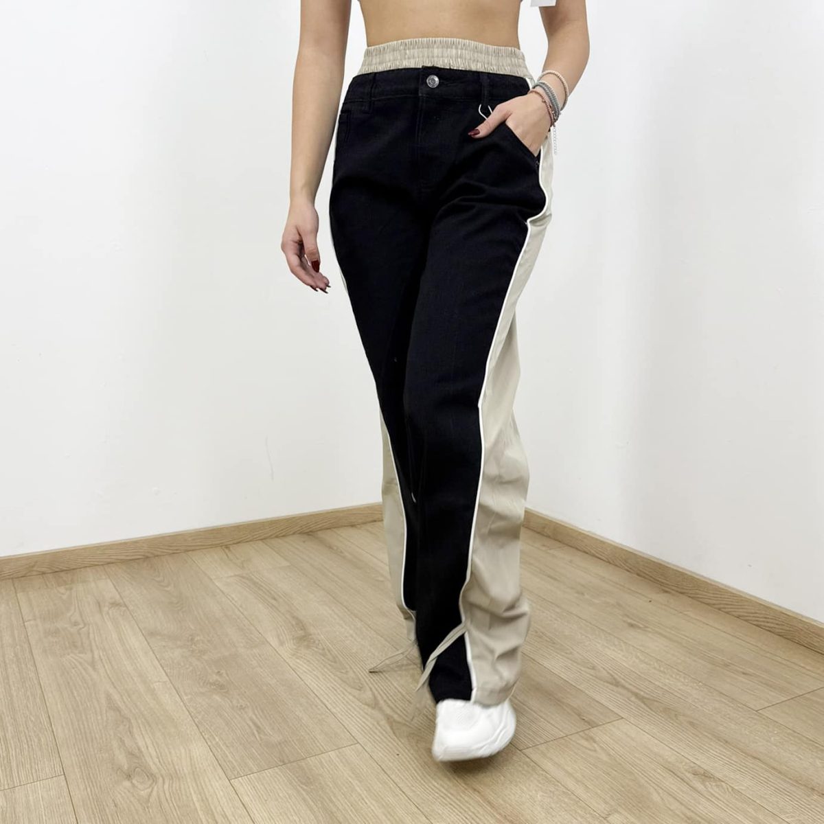 Elevate your streetwear style with these Urban Contrast Wide-Leg Pants. Designed with a bold two-tone color block pattern in black and beige, they feature a relaxed fit, soft elastic waistband, and side pockets for effortless comfort. The flared silhouette creates a flattering, laid-back vibe perfect for casual outings, coffee runs, or pairing with your favorite crop top. Stay comfortable while standing out with this modern street-style essential.