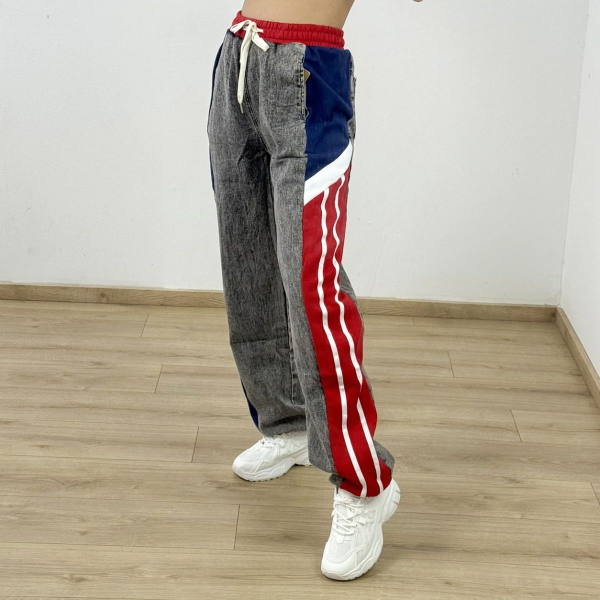 Bring bold streetwear vibes to your summer wardrobe with these Urban Edge Colorblock Jogger Pants. Designed for comfort and style, they feature a unique grey-wash base with striking red and navy side panels, accented by crisp white stripes. The elastic drawstring waist ensures the perfect fit, while the relaxed silhouette makes them ideal for casual days or sporty chic looks.