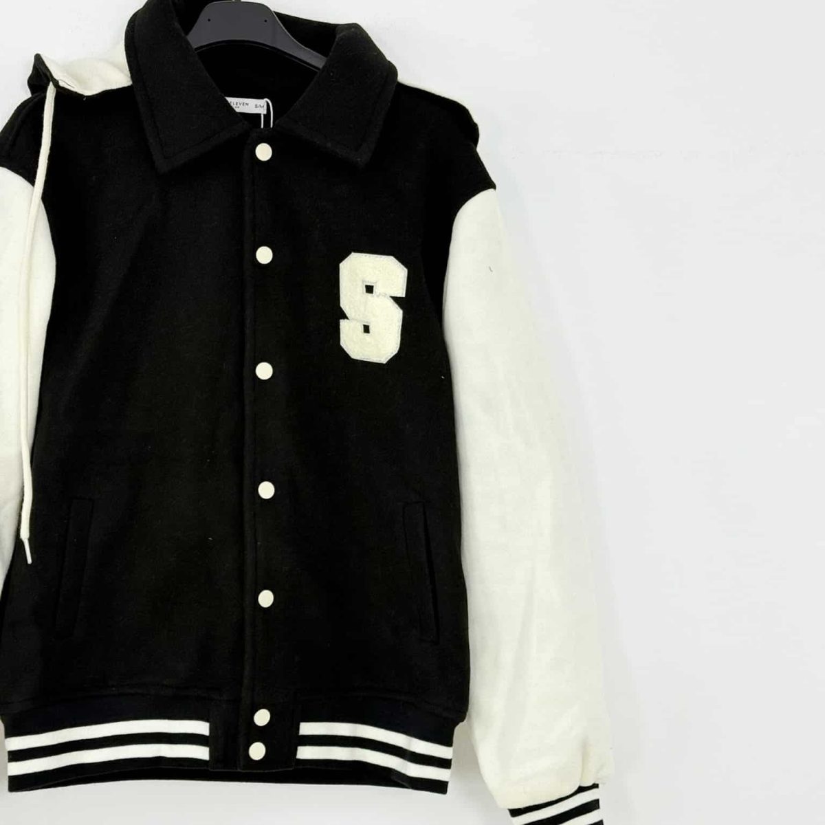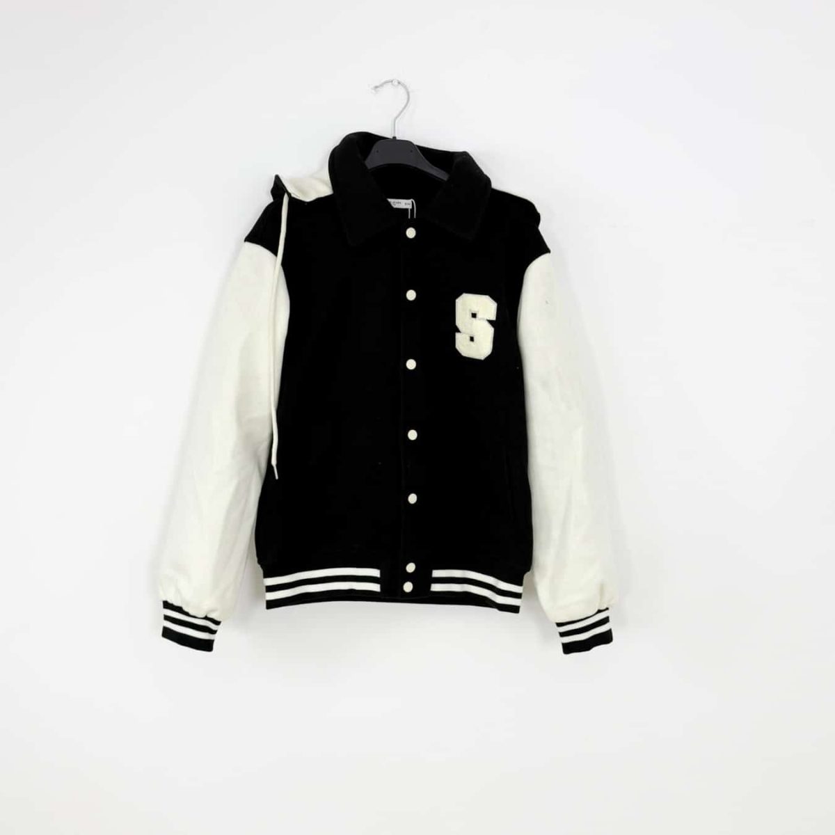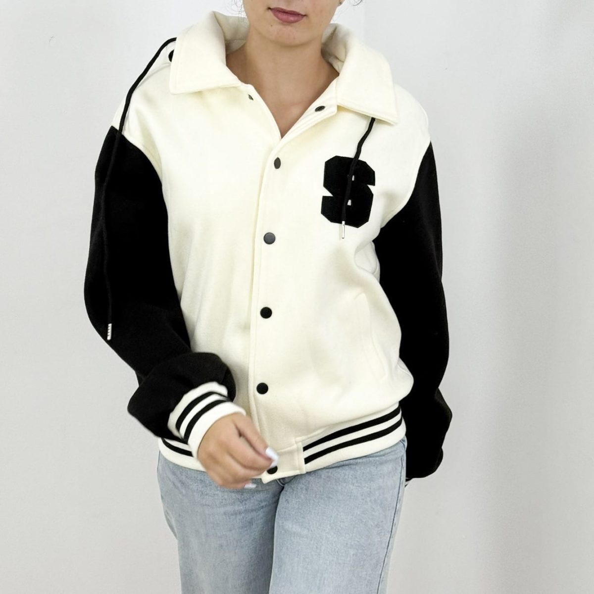Snap-button closure and striped details for a classic varsity vibe