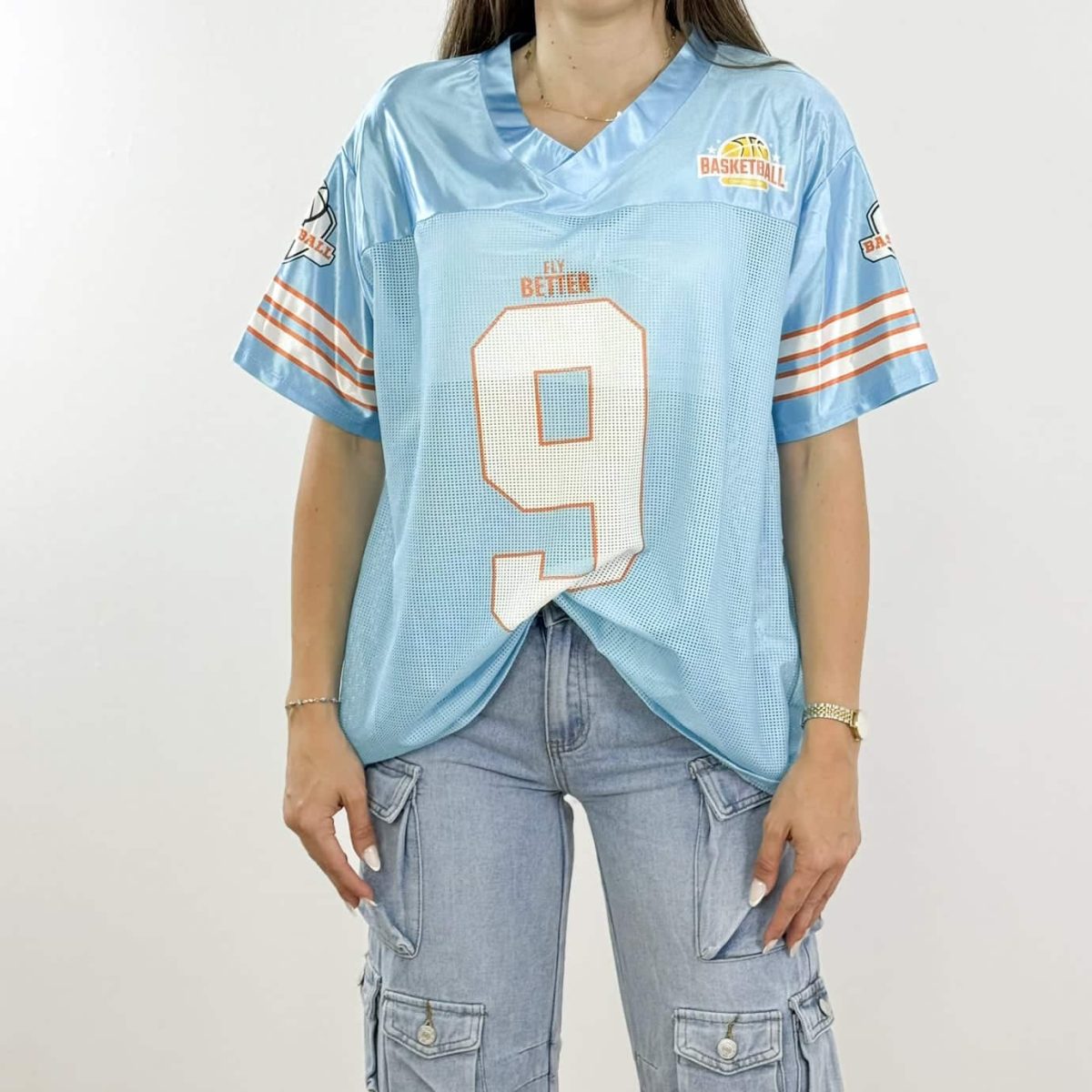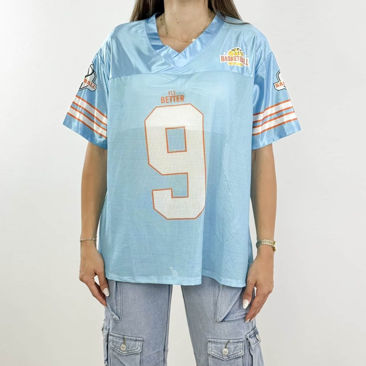 Score major style points with this unisex Varsity Glow Mesh Jersey Tee. Featuring a breathable perforated design, satin shoulder panels, bold “9” print, and contrast athletic stripes, this oversized jersey blends sporty edge with streetwear vibes. Available in multiple standout colorways, it’s the perfect choice for casual days, festivals, or athleisure looks that turn heads.